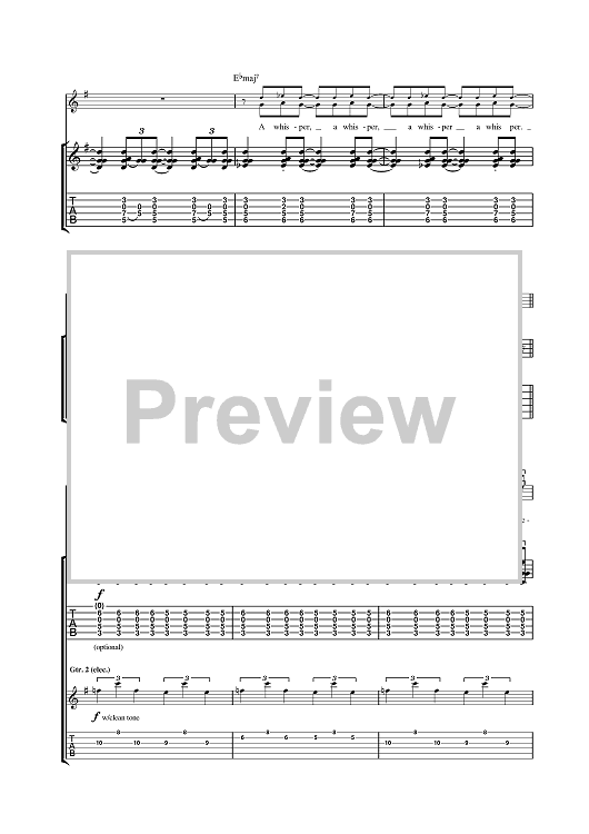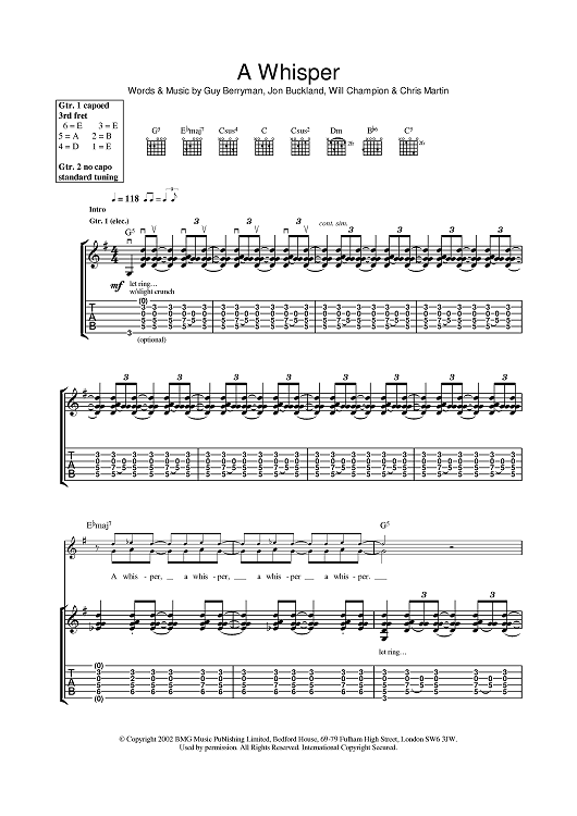 Digital Sheet Music for A Whisper by Coldplay scored for Guitar Tab; id:377698