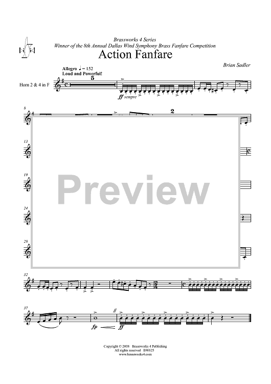 Digital Sheet Music for Action Fanfare - Horns in F 2 & 4 by Brian Sadler scored for Brass Ensemble; id:410799