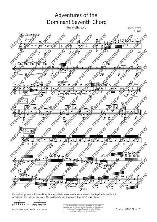 Digital Sheet Music for Adventures of the Dominant Seventh Chord by Peter Eötvös scored for Violin; id:496349