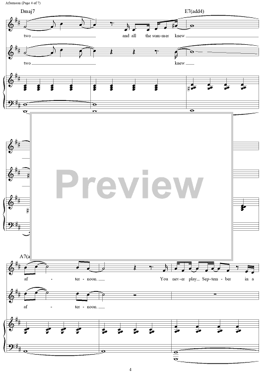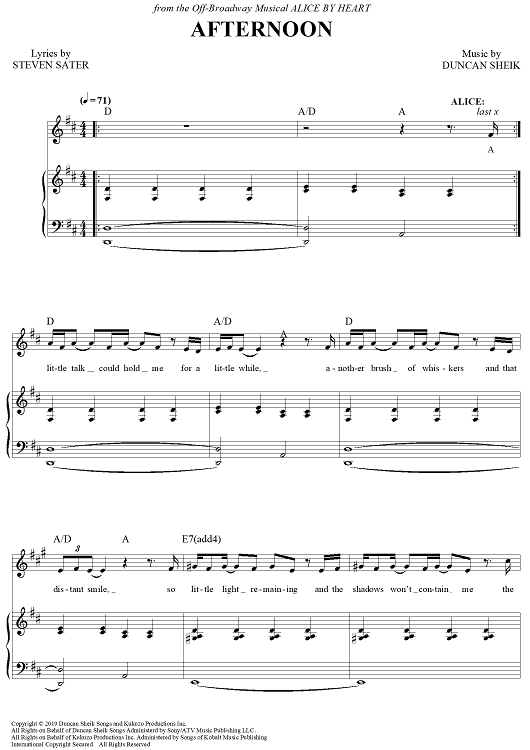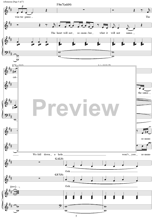Digital Sheet Music for Afternoon by Duncan Sheik, Steven Sater scored for Piano/Vocal/Chords; id:467829