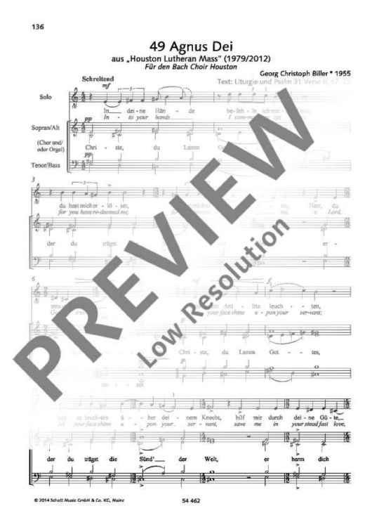 Digital Sheet Music for Agnus Dei by Georg Christoph Biller scored for Solo And Mixed Choir (satb) (organ); id:486481