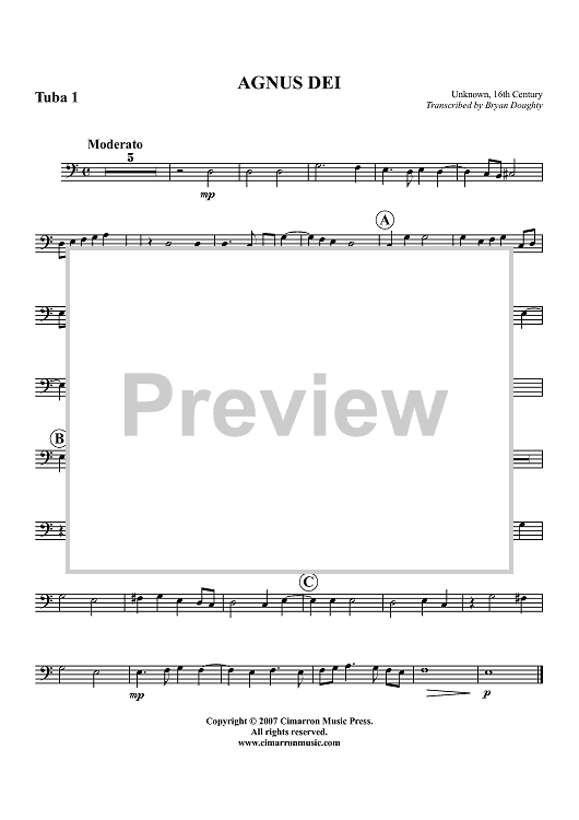 Digital Sheet Music for Agnus Dei - Tuba 1 by Unknown Writer, Bryan Doughty scored for Tuba Ensemble; id:361122