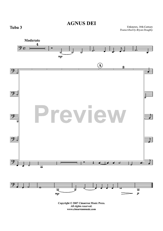 Digital Sheet Music for Agnus Dei - Tuba 3 by Unknown Writer, Bryan Doughty scored for Tuba Ensemble; id:361124