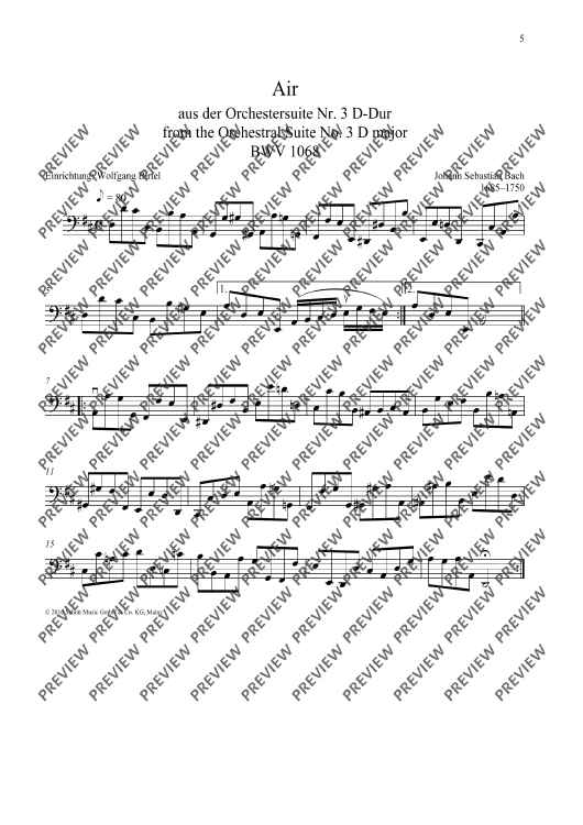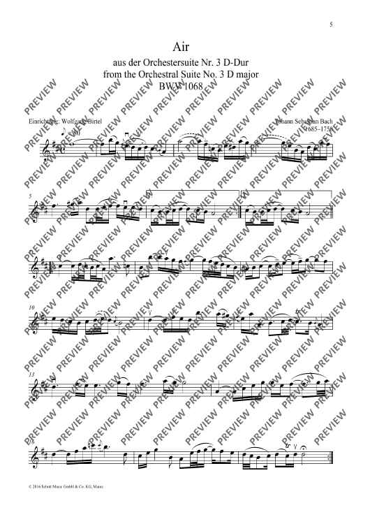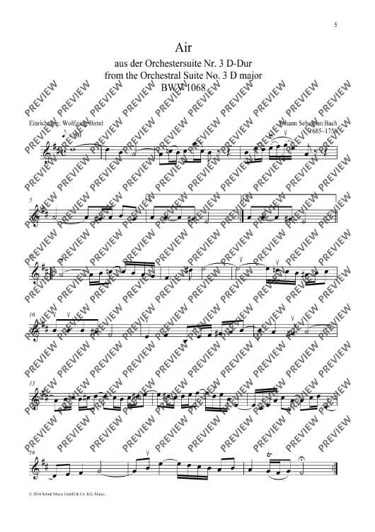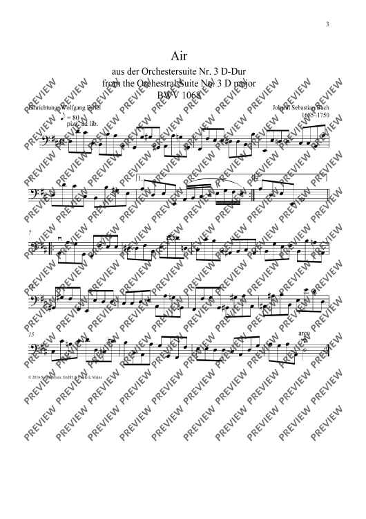 Digital Sheet Music for Air by Johann Sebastian Bach, Wolfgang Birtel scored for String Quartet; id:490763