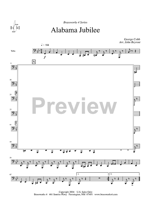 Digital Sheet Music for Alabama Jubilee - Tuba by George L. Cobb, John Beyrent scored for Brass Ensemble; id:428294