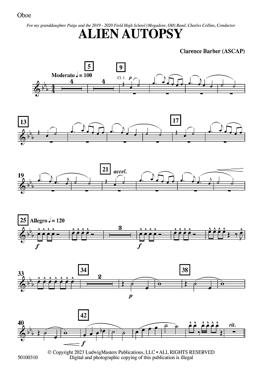 "Alien Autopsy - Oboe" Sheet Music by Clarence Barber
