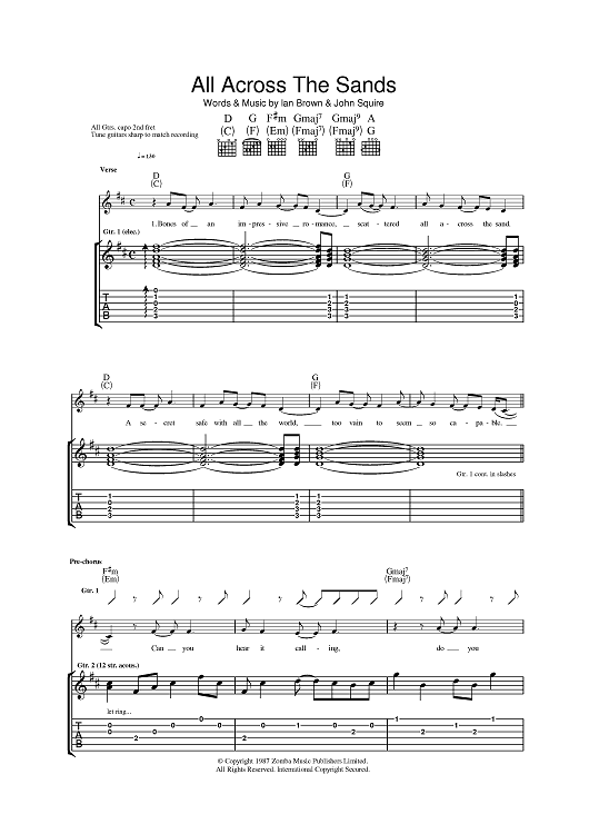 Digital Sheet Music for All Across The Sands by Ian Brown, John Squire, The Stone Roses scored for Guitar Tab; id:396199
