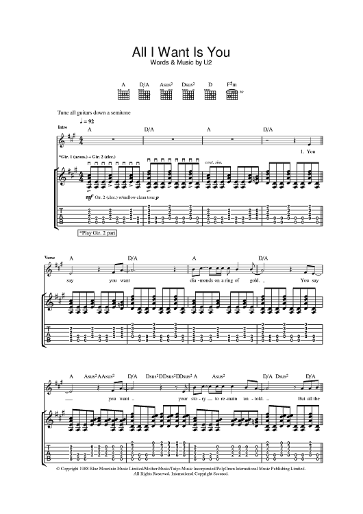 Digital Sheet Music for All I Want Is You by U2, Bono scored for Guitar Tab; id:381913