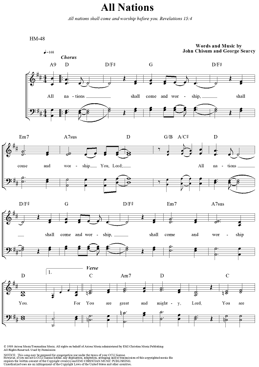 Digital Sheet Music for All Nations by John Chisum, George Searcy scored for Piano/Vocal/Chords; id:110782