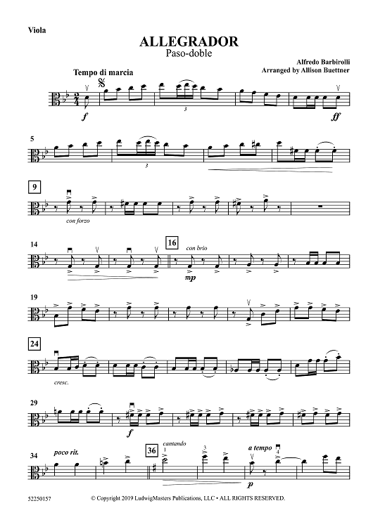 "Allegrador Paso Doble - Viola" Sheet Music by Alfredo Barbirolli