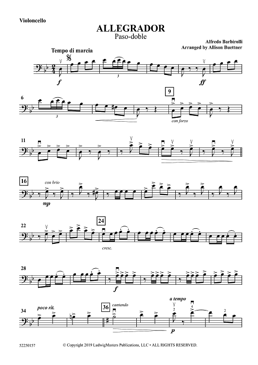 Digital Sheet Music for Allegrador Paso Doble - Violoncello by Allison Buettner, Alfredo Barbirolli scored for String Orchestra; id:509065