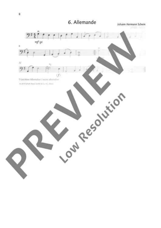 Digital Sheet Music for Allemande by Johann Hermann Schein scored for 2 Violins And Cello; id:497669