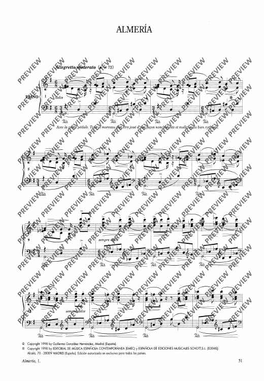 Digital Sheet Music for Almeria by Isaac Albéniz scored for Piano; id:500413