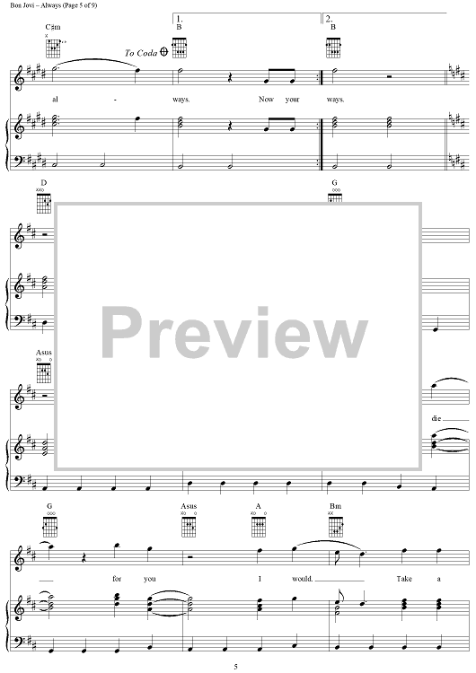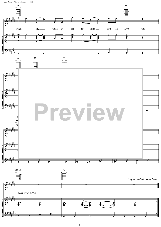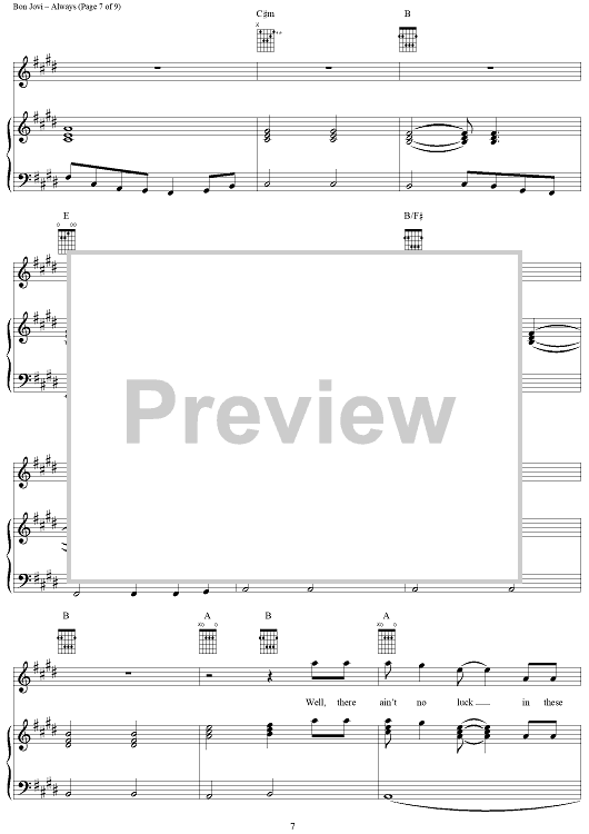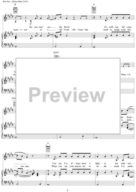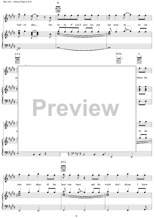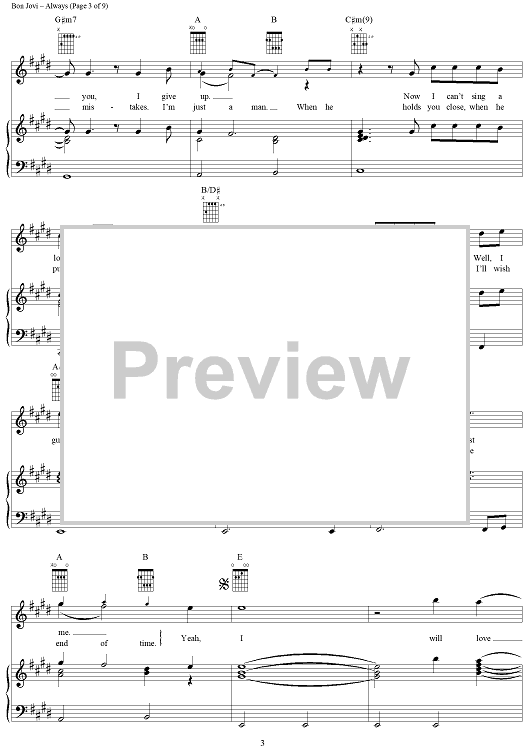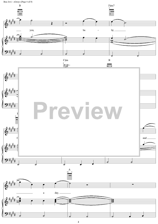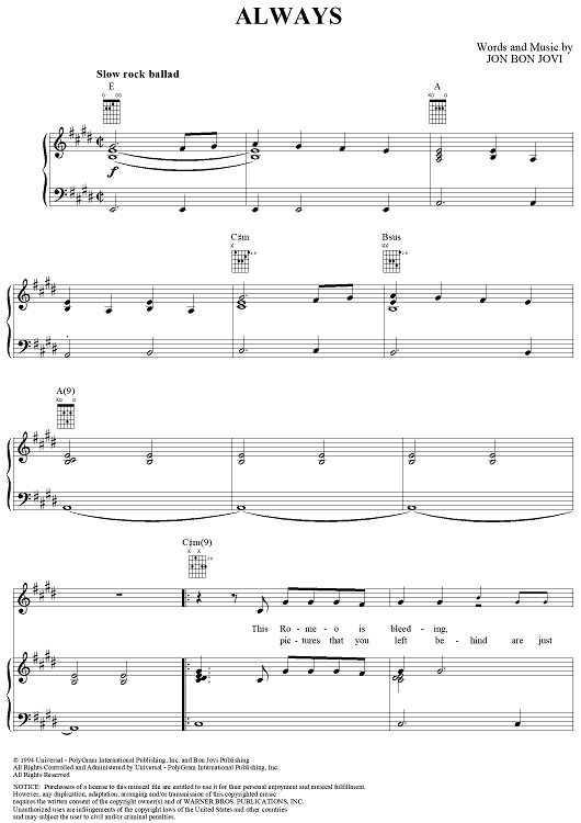 Digital Sheet Music for Always by Bon Jovi, Jon Bon Jovi scored for Piano/Vocal/Chords; id:293320