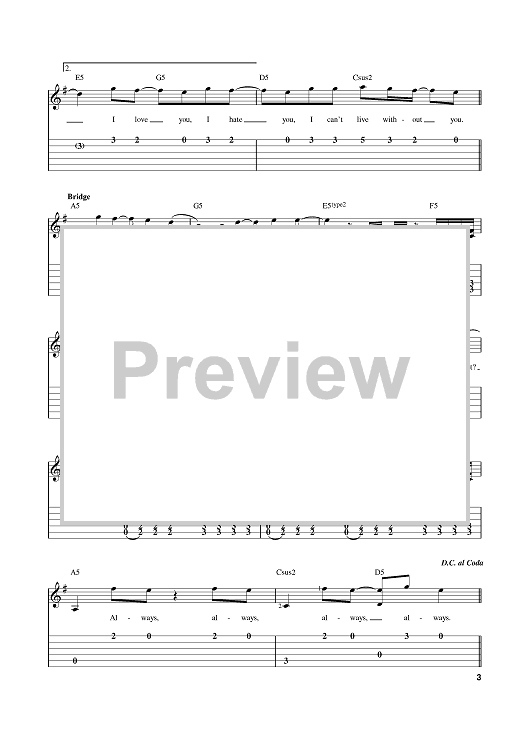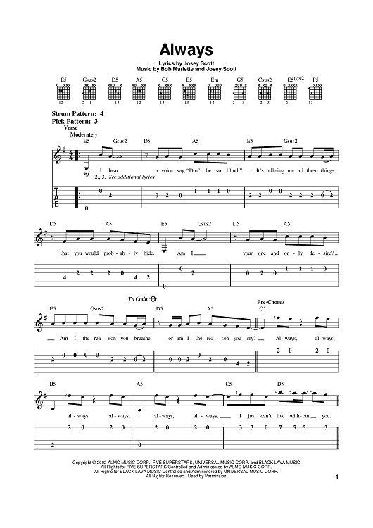 Digital Sheet Music for Always by Saliva, Bob Marlette, Josey Scott scored for Easy Guitar Tab; id:371487