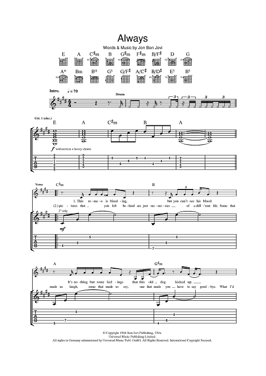 Digital Sheet Music for Always by Bon Jovi, Jon Bon Jovi scored for Guitar Tab; id:397048