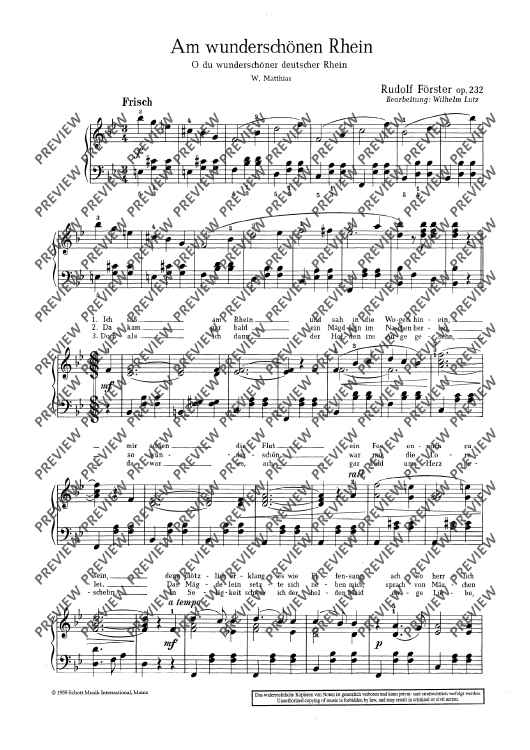 Digital Sheet Music for Am wunderschönen Rhein by Wilhelm Lutz, Rudolf Foerster scored for Piano With Text; id:483748