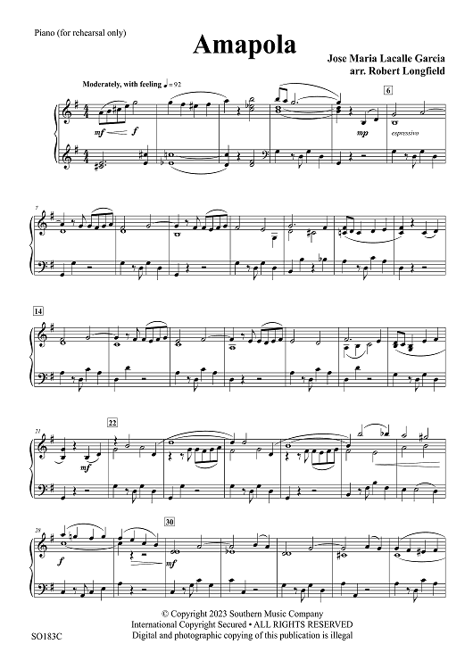 "Amapola - Piano" Sheet Music by Jose Garcia
