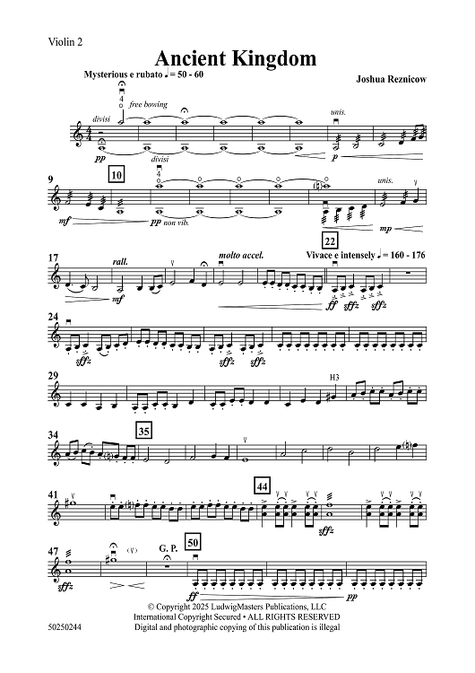 Digital Sheet Music for Ancient Kingdom - Violin 2 by Joshua Reznicow scored for String Orchestra; id:508677