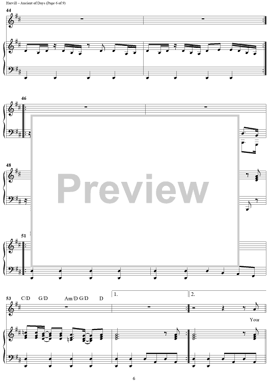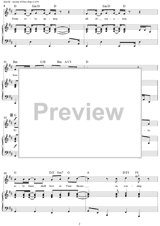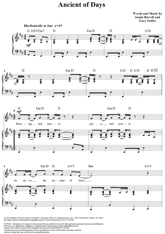 Digital Sheet Music for Ancient of Days by Gary Sadler, Jamie Harvill scored for Piano/Vocal/Chords; id:307704