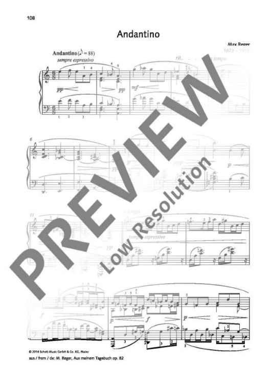 "Andantino A minor" Sheet Music by Max Reger