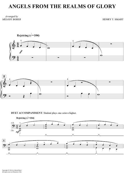 Digital Sheet Music for Angels From The Realms of Glory by Henry T. Smart, Melody Bober scored for Piano; id:459860
