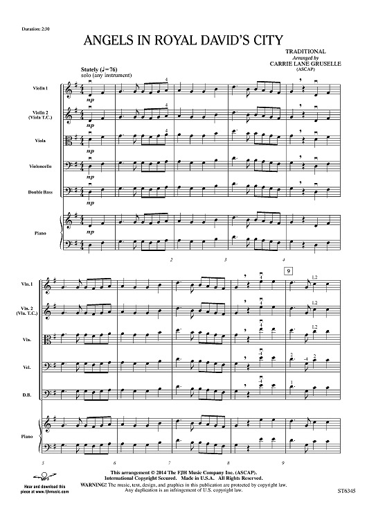 Digital Sheet Music for Angels in Royal David's City - Score by Traditional, Carrie Lane Gruselle scored for Orchestra; id:448124