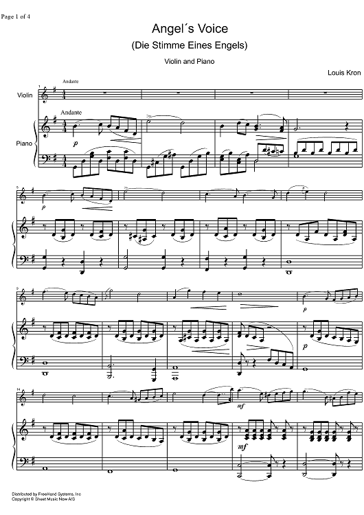 Digital Sheet Music for Angel's Voice - Die Stimme eines Engels - Score by SMN Archive Collection, Louis Kron scored for Violin/Piano; id:325266
