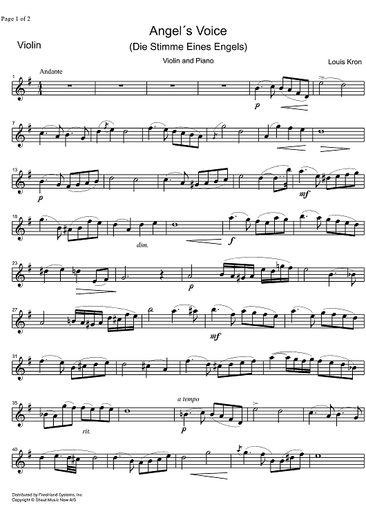 "Angel's Voice - Die Stimme eines Engels - Violin" Sheet Music by Louis Kron