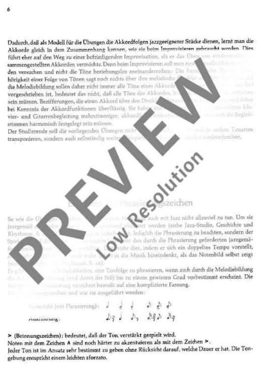 Jazz ist Rhythmus und Improvisation. Diese Anleitung will den Weg weisen, wie sich jeder das Improvisieren aneignen kann. Von der einfachen Übung bis zum vollendeten Chorus sind alle Schwierigkeitsgrade berücksichtigt. Darüber hinaus können zwei oder mehr Spieler verschiedener Instrumente sich durch gemeinsames Üben mit der Kollektiv-Improvisation vertraut machen. Für diesen Zweck weisen die Übungen gleicher Nummer bei allen Instrumenten dieselbe Harmoniefolge und dieselbe (klingende) Tonart auf. Der Erfolg wird sich einstellen, wenn die Besonderheiten des Rhytmus, die Regeln der Melodiebildung und die harmonischen Grundlagen des Jazz in den Schriften "geschichte und Rhythmus" und "Harmonielehre" aus der JAZZ-STUDIO-Reihe beachtet werden. - Die Melodiesammlung "Old Folks at Home" bietet zusätzlich für das Üben der Improvisation vierzig bekannte Songs und Spirituals.