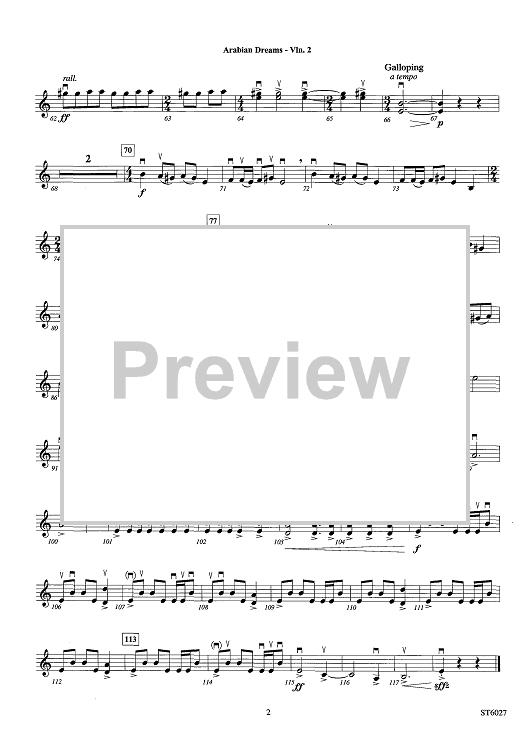 "Arabian Dreams - Violin 2" Sheet Music by Soon Hee Newbold