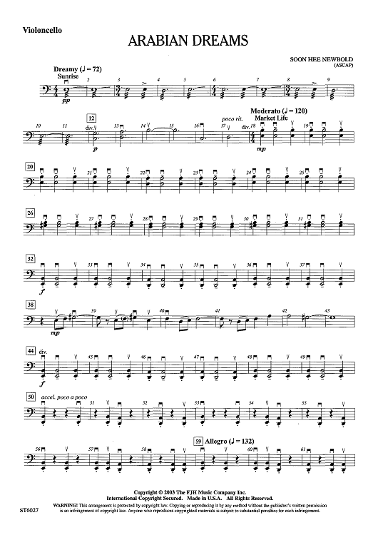 "Arabian Dreams - Violoncello" Sheet Music by Soon Hee Newbold