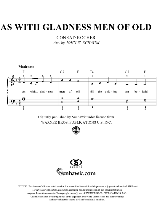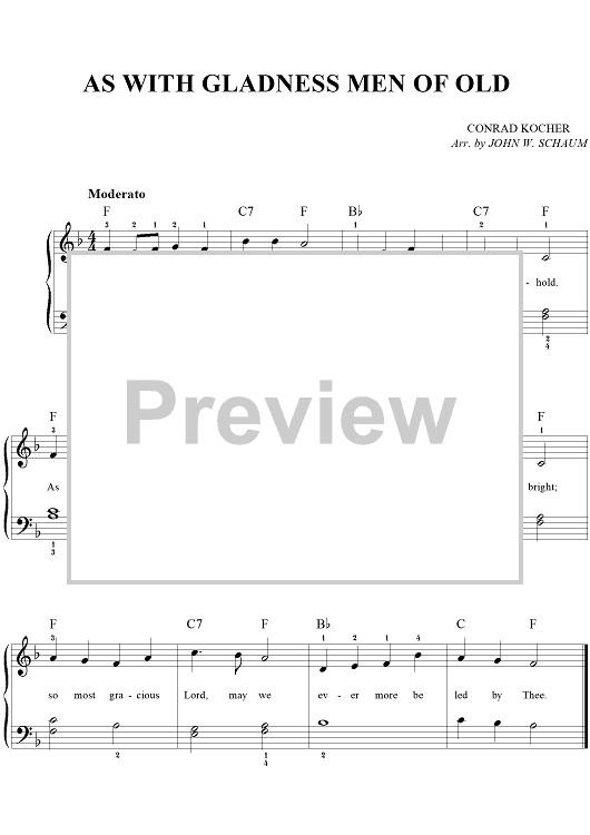 Digital Sheet Music for As With Gladness Men Of Old by John W. Schaum, Conrad Kocher scored for Easy Piano/Vocal; id:241887