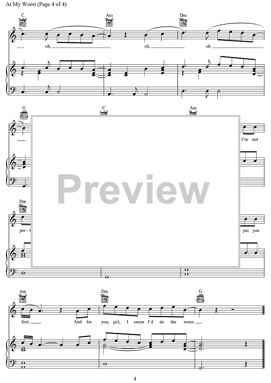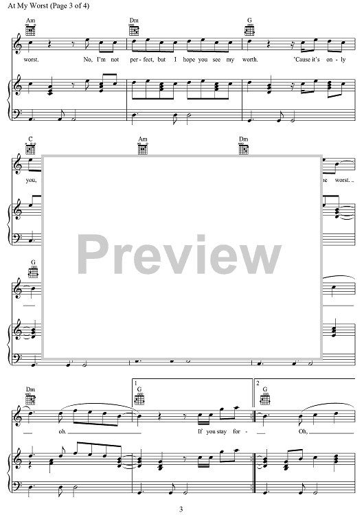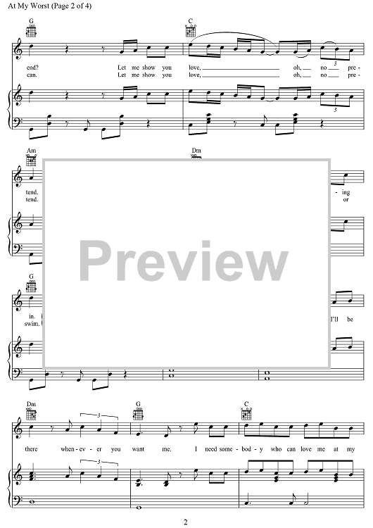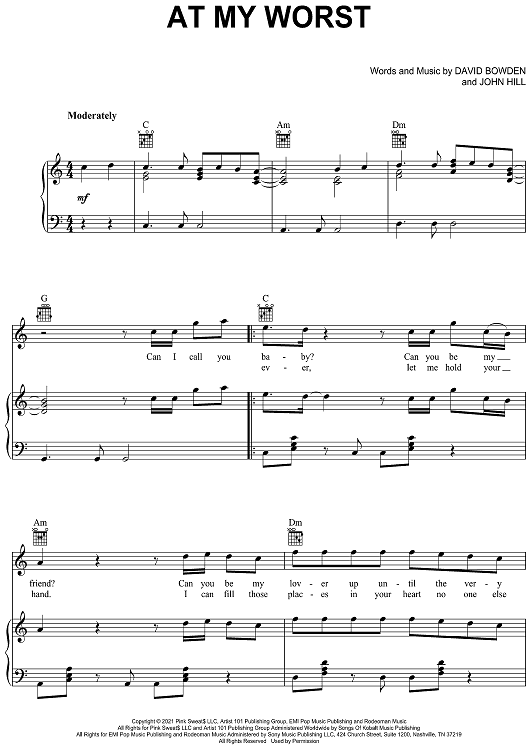 Digital Sheet Music for At My Worst by John Hill, Pink Sweat$, David Bowden scored for Piano/Vocal/Chords; id:469208