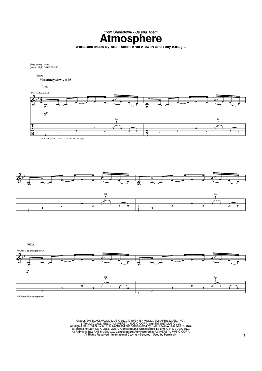 Digital Sheet Music for Atmosphere by Brad Stewart, Tony Battaglia, Shinedown, Brent Smith scored for Guitar Tab; id:392352
