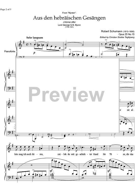 "Aus dem hebräischen Gesängen Op.25 No.15" Sheet Music by Robert Schumann