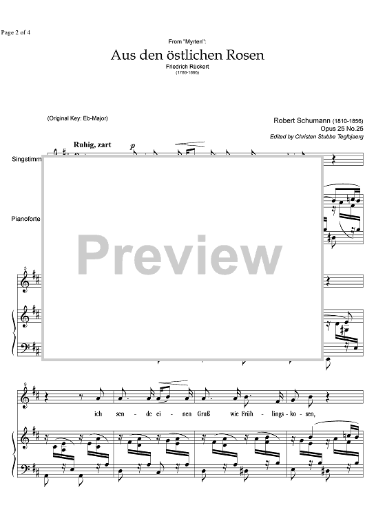 Digital Sheet Music for Aus den östlichen Rosen Op.25 No.25 by , Robert Schumann scored for Soprano or Tenor/Piano; id:332717