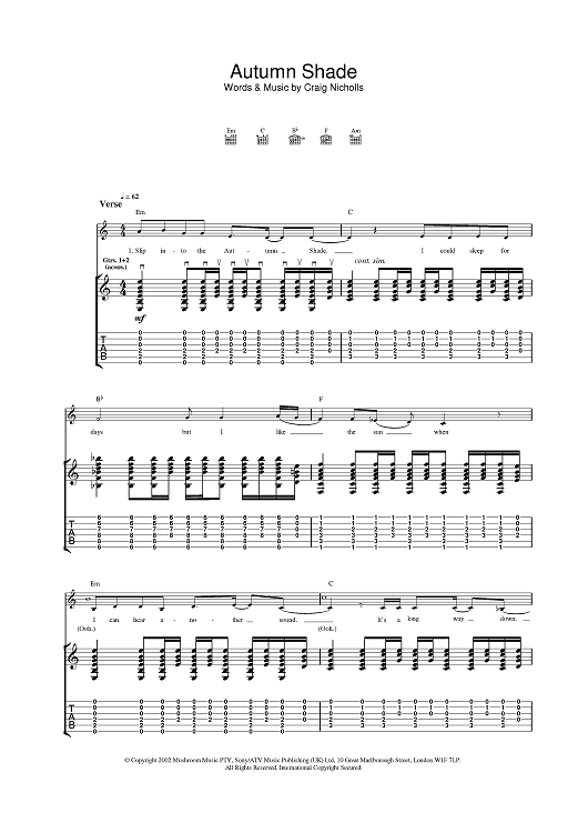 Digital Sheet Music for Autumn Shade by The Vines scored for Guitar Tab; id:377653