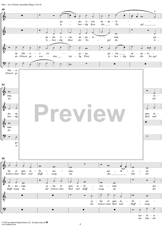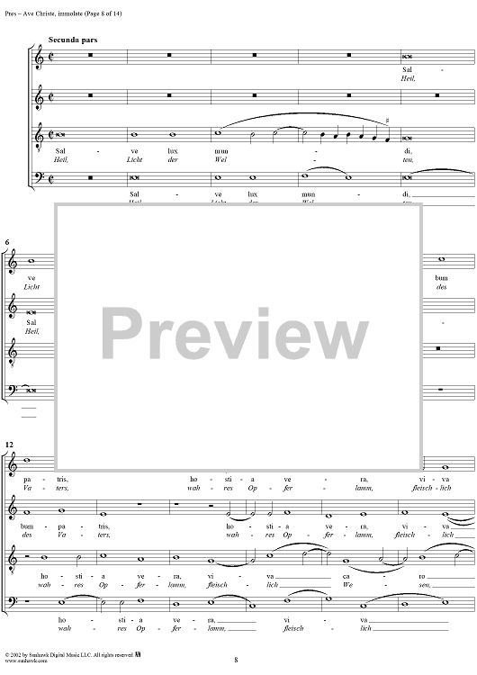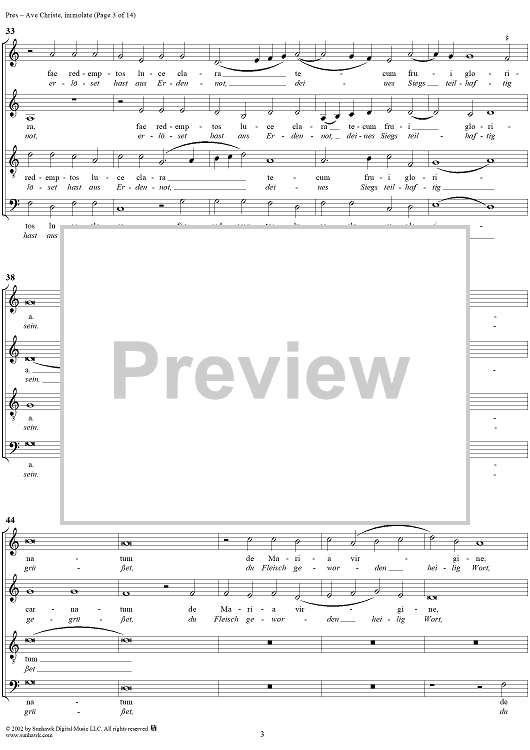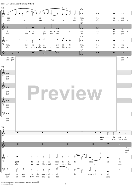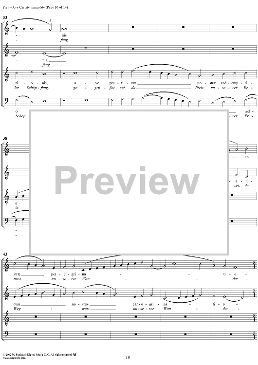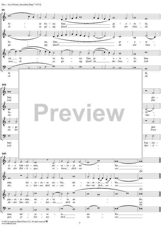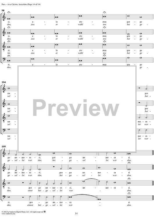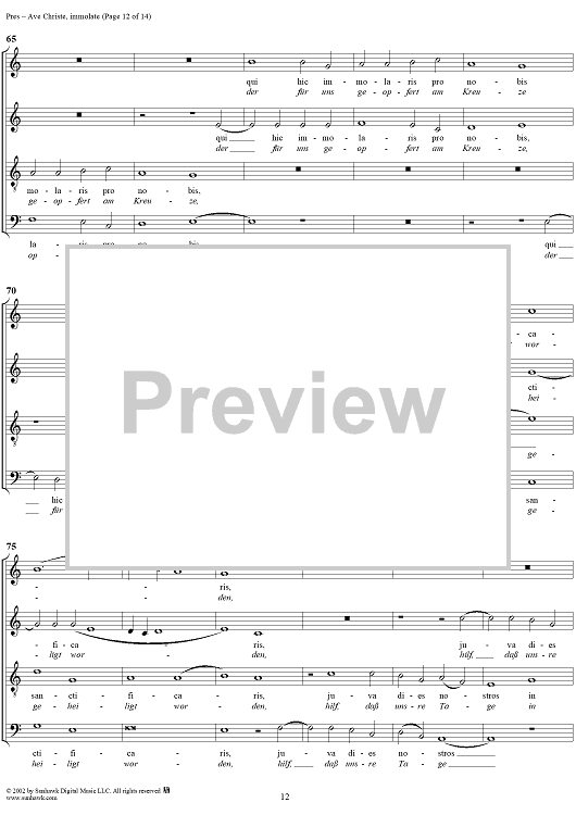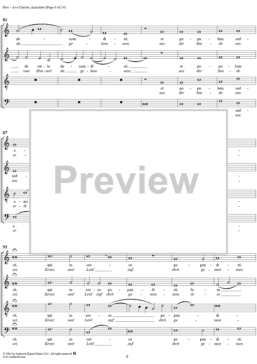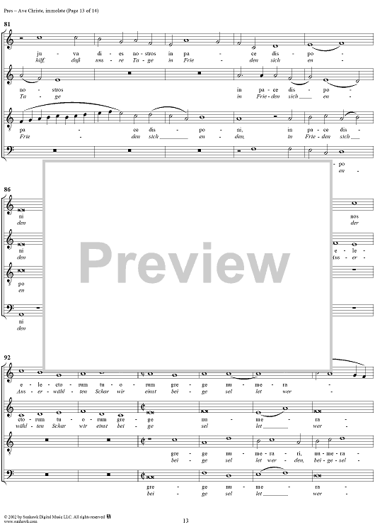 Digital Sheet Music for Ave Christe immolate by Josquin Des Pres scored for Mixed Chorus; id:271251