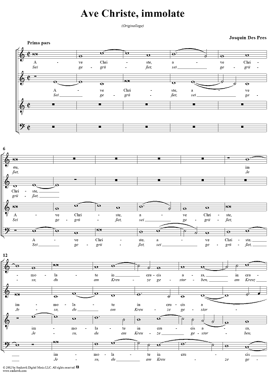 "Ave Christe immolate" Sheet Music by Josquin Des Pres