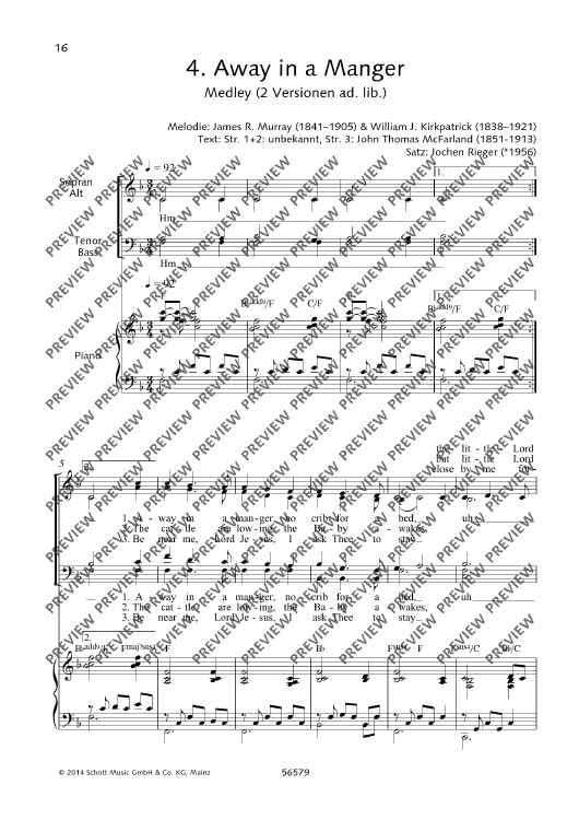 Digital Sheet Music for Away in a Manger by James Ramsey Murray, Jochen Rieger, William K. Kirkpatrick scored for Mixed Choir (satb) And Piano; id:485857