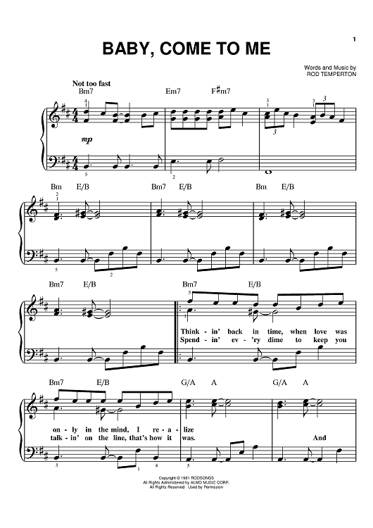 Digital Sheet Music for Baby, Come To Me by Rod Temperton, Patti Austin, James Ingram scored for Easy Piano; id:367470