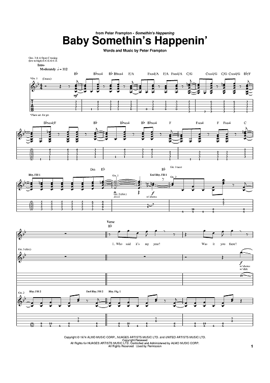 Digital Sheet Music for Baby Somethin's Happenin' by Peter Frampton scored for Guitar Tab; id:402674