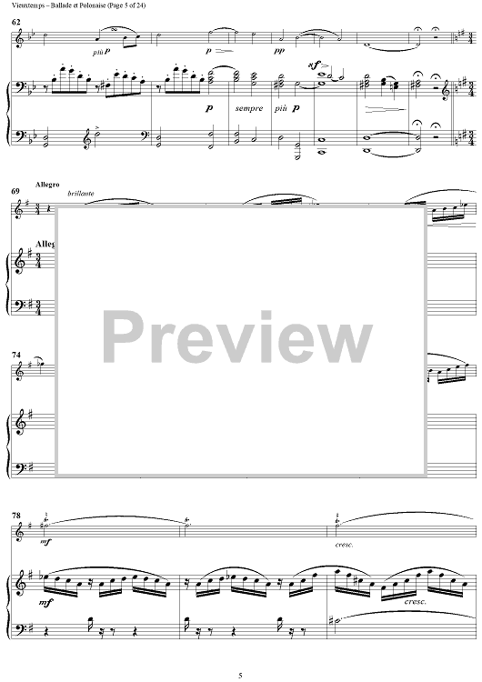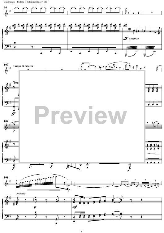 Digital Sheet Music for Ballade et Polonaise - Piano Score by Henri Vieuxtemps scored for Violin/Piano; id:265009