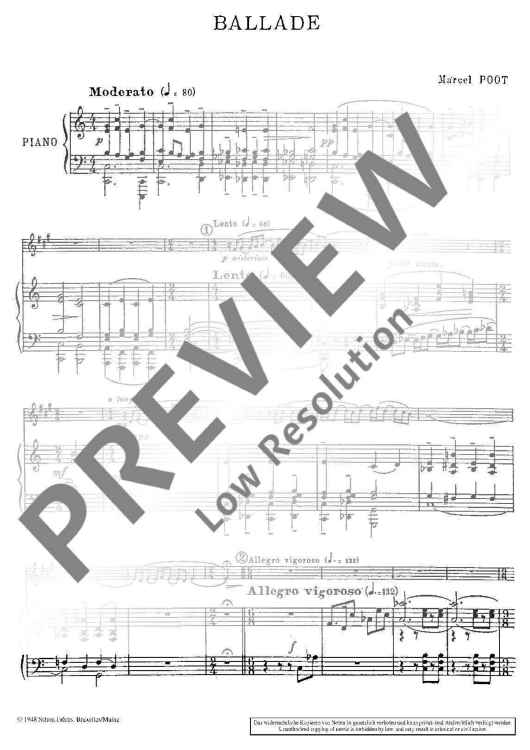"Ballade - Piano Score and Solo Part" Sheet Music by Marcel Poot