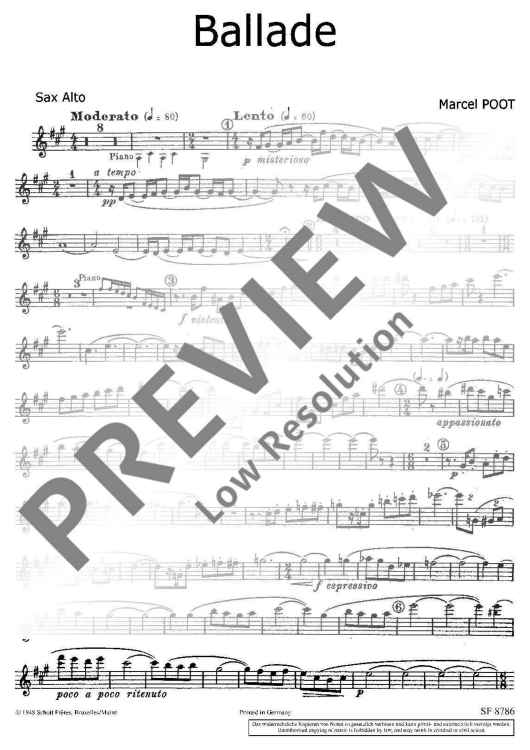 Digital Sheet Music for Ballade - Piano Score and Solo Part by Marcel Poot scored for Alto Saxophone, Piano And Orchestra; id:476690