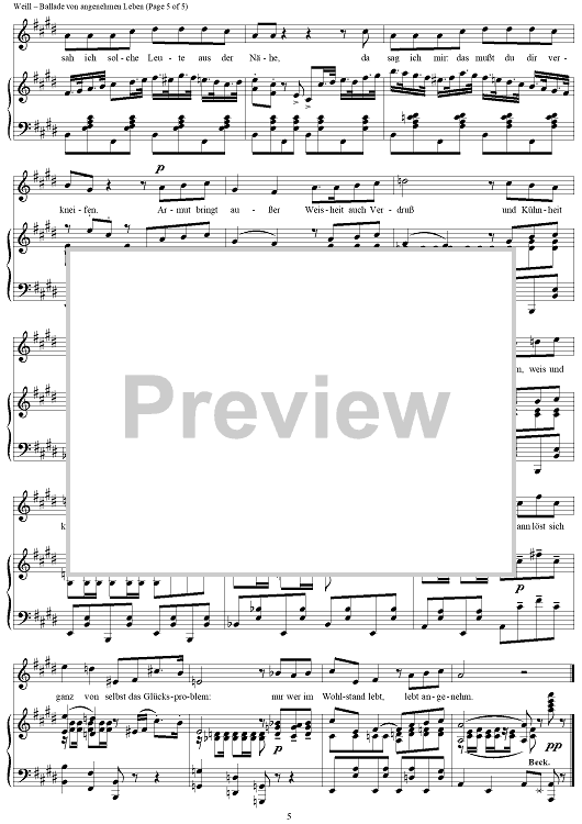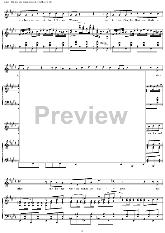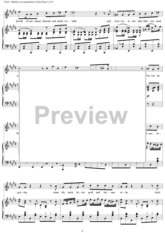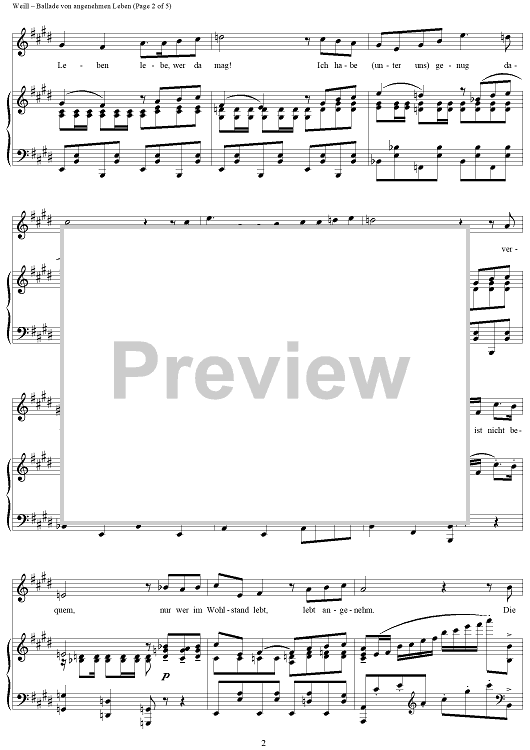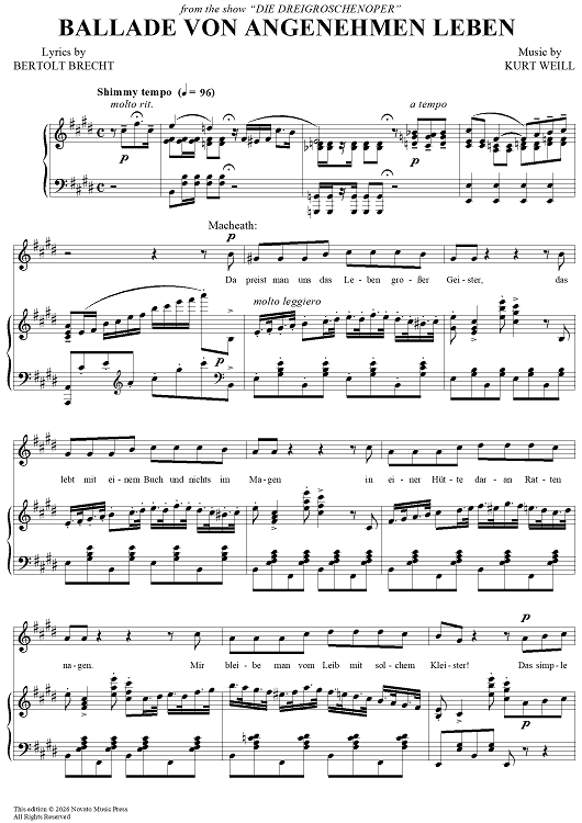 "Ballade von angenehmen Leben" Sheet Music by Kurt Weill
