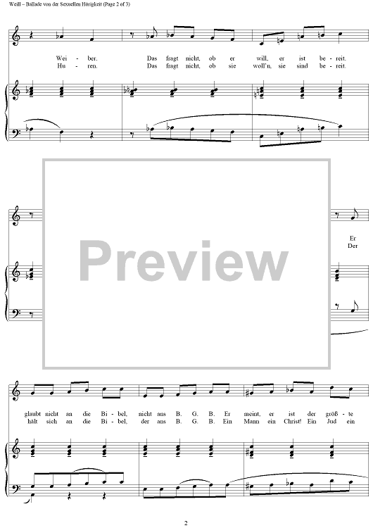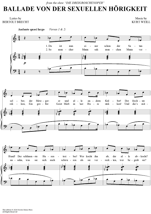 "Ballade von der sexuellen Horigkeit" Sheet Music by Kurt Weill