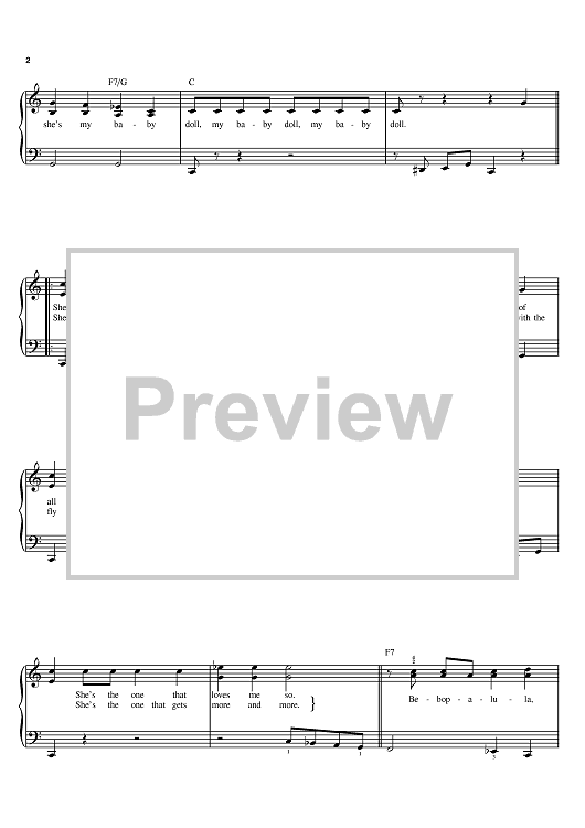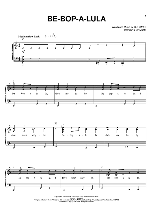 Digital Sheet Music for Be-Bop-A-Lula by Gene Vincent, Tex Davis scored for Easy Piano; id:369235