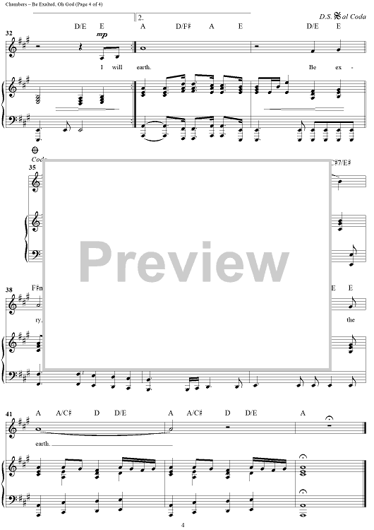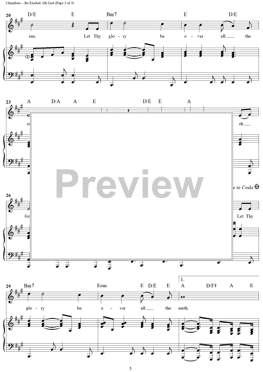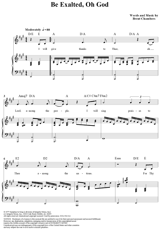 Digital Sheet Music for Be Exalted, O God by Brent Chambers scored for Piano/Vocal/Chords; id:307708